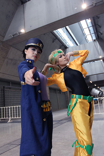 Jotaro (Left) and Dio (Right) outfit (Jacket and pants) made by Yuto all accessaries by Vampy Bit Me