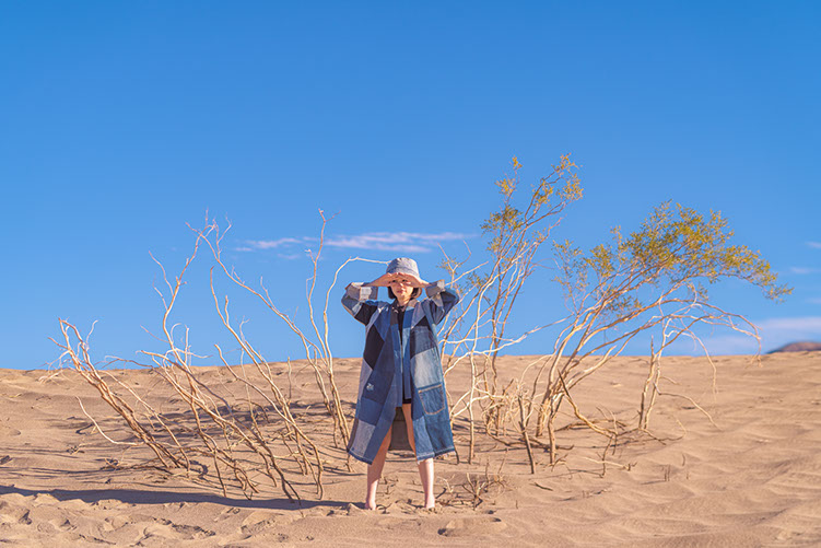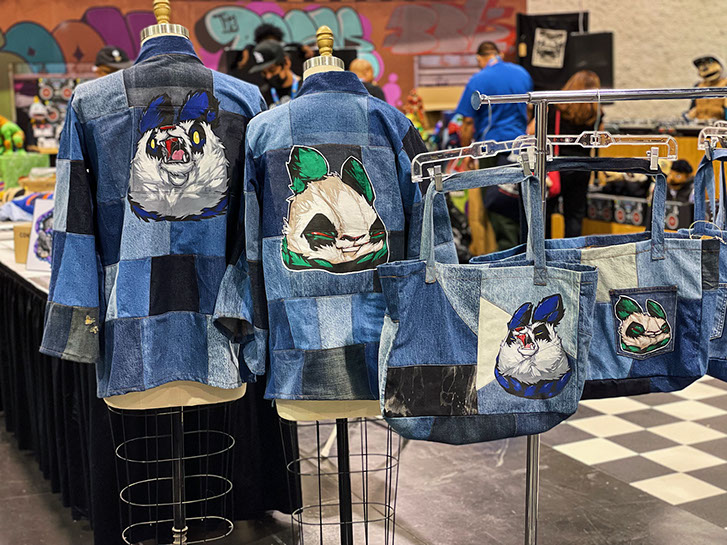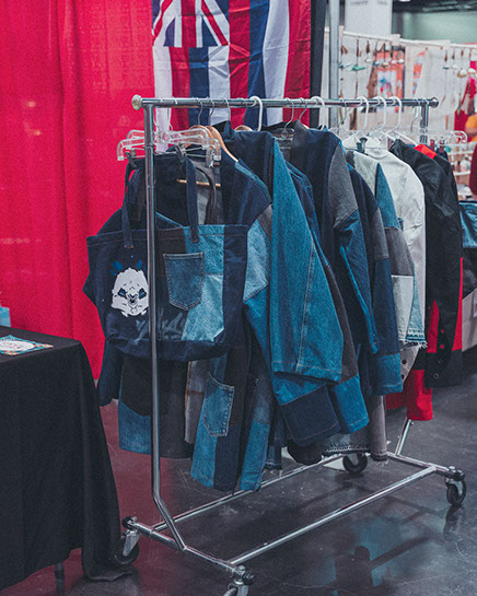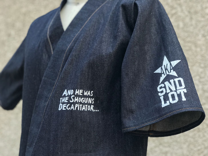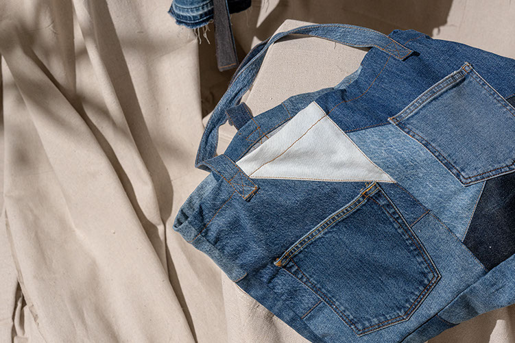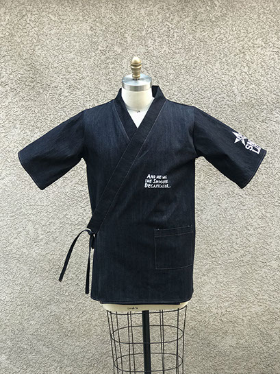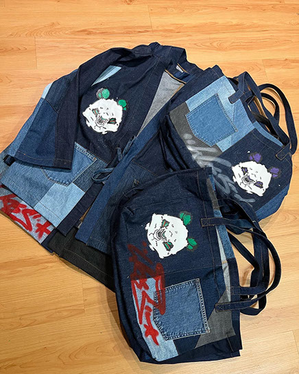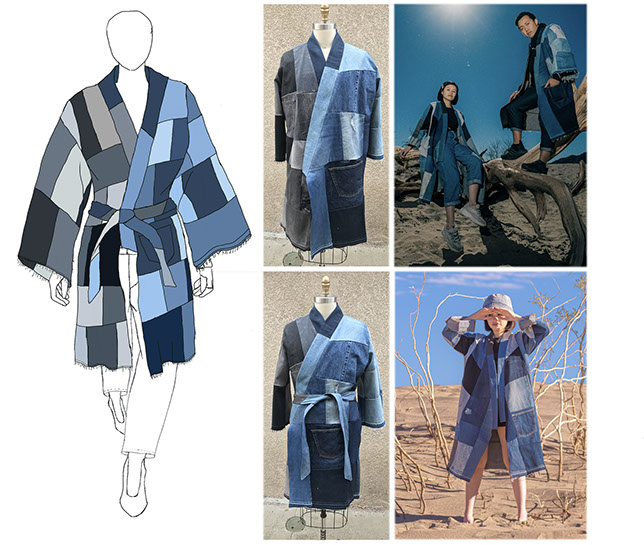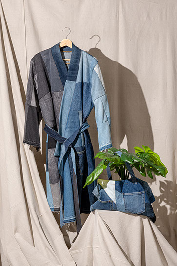 Japanese style jacket (HAORI) and tote bag made with recycled denim